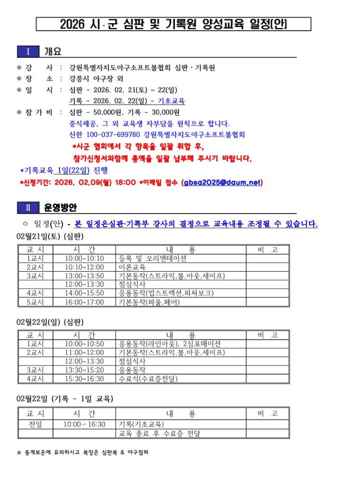 2026 동해시 야구소프트볼 협회 심판 자격 안내
